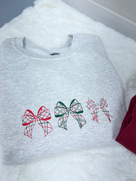Plaid bow trio