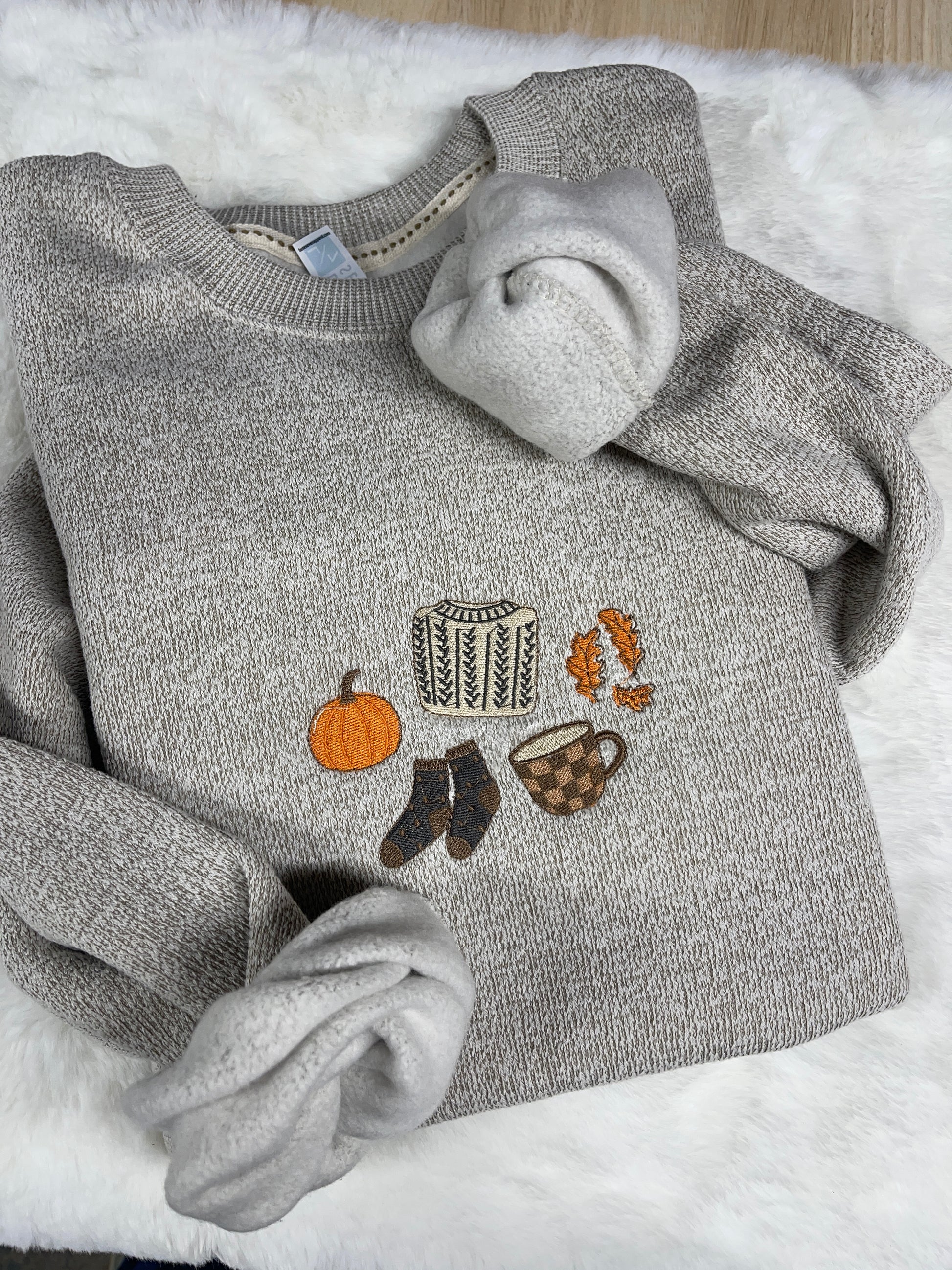 Get ready for the coziest fall yet with our Fall icons embroidered crewneck! Made with premium soft material, this crewneck is designed for ultimate comfort. Stay warm and stylish with this must-have addition to your fall wardrobe. Perfect for snuggling up on chilly days or adding a touch of warmth to any outfit.